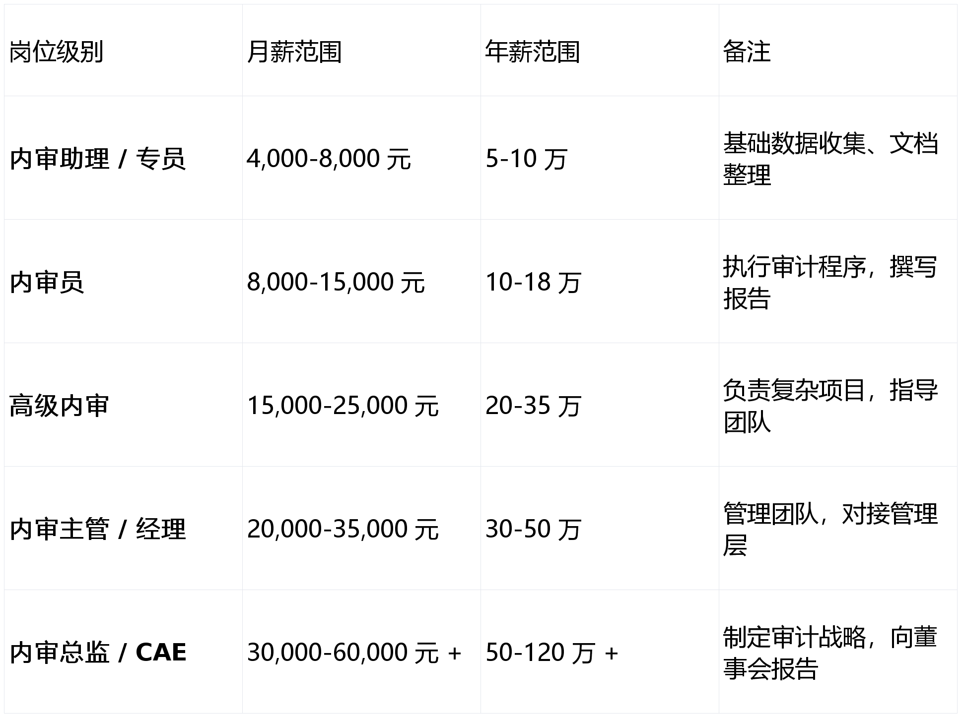 典型案例:上海内审平均年薪 36。7 万, 70。9% 岗亭月薪 10-50K,深圳部门高级岗亭年薪可达 80-110 万 (16 薪)。